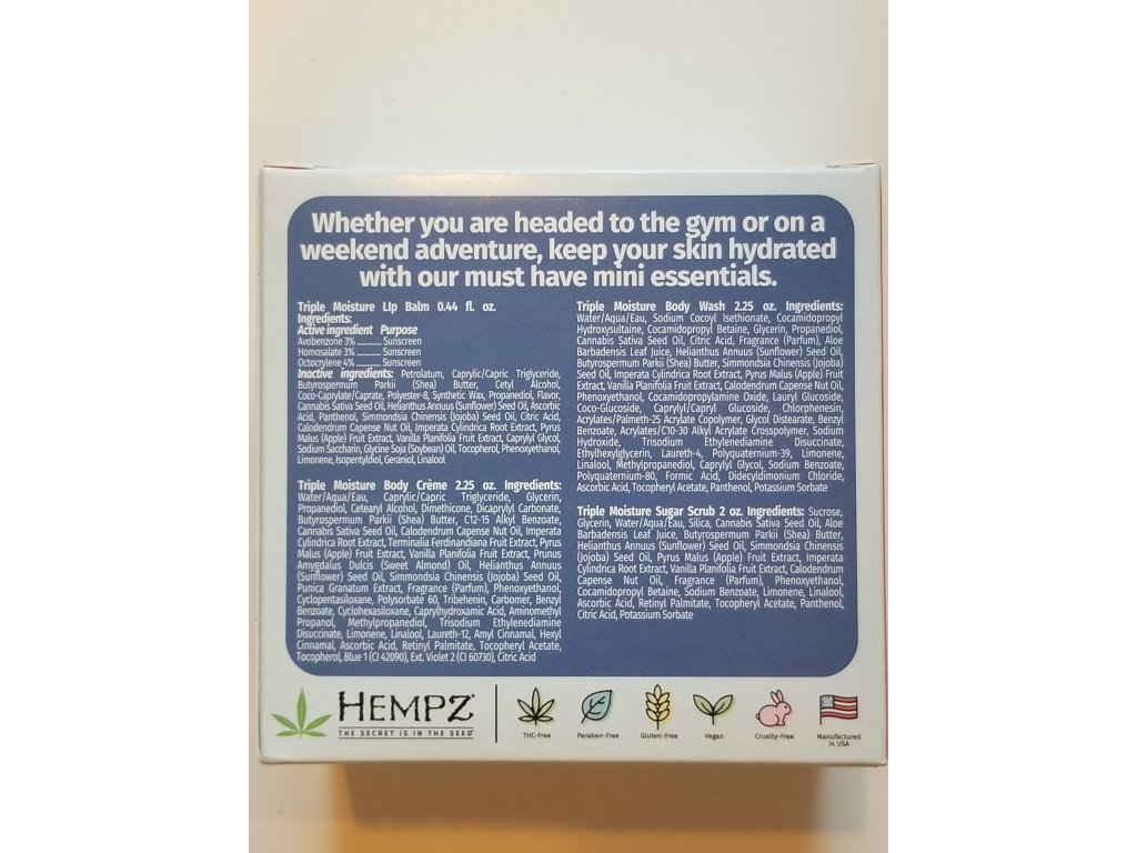 Hempz sada modrá - triple moisture (peeling, krémy, balzám na rty)