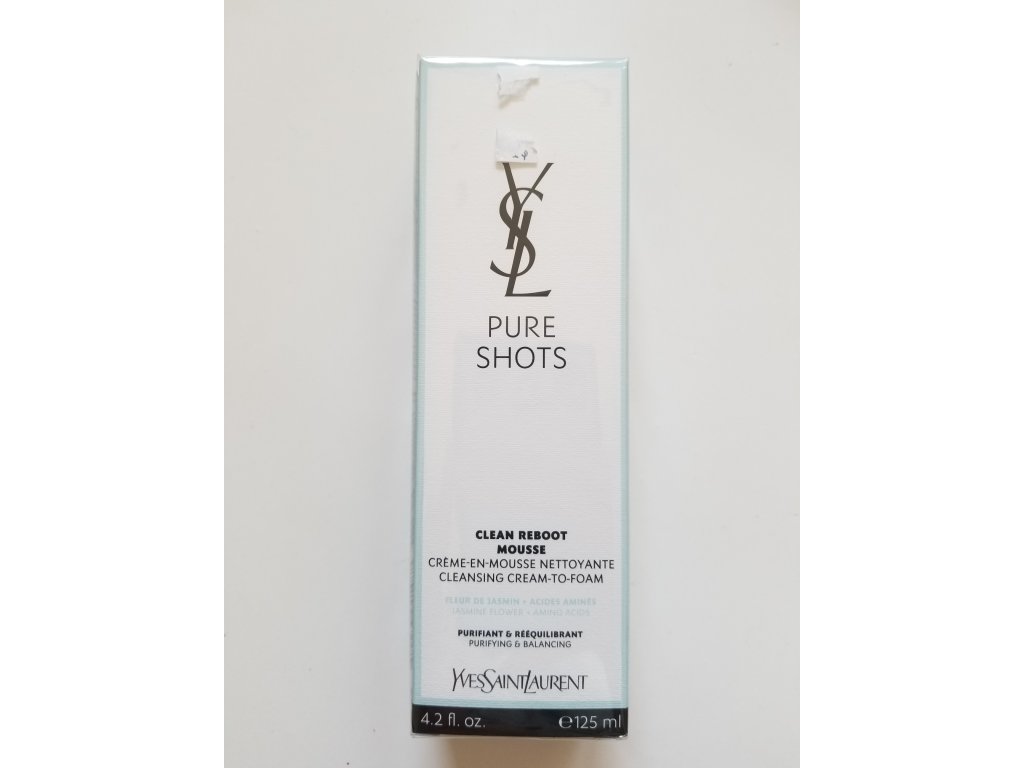 Nová Pure Shots Clean Reboot Mousse, průlomová krémová čisticí pěna od YSL Beauty. Jemná, nevysušující čisticí technologie, kterou pohání dávka čisticích účinných látek: aminokyseliny a osvěžující výtažky z květů jasmínu. Její transformační krémová textura se promění ve velkorysou jemnou pěnu, která bez námahy odstraní všechny nečistoty pocházející z života ve městě a zbytky make-upu. Pleť je okamžitě vyčištěná a nadměrná tvorba mazu je rázem pod kontrolou. Pleť je den za dnem vyrovnanější a jemnější a získává zdravý lesk. Použij tuto čisticí pěnu jako první krok k přípravě pleti na kompletní péči Pure Shots.